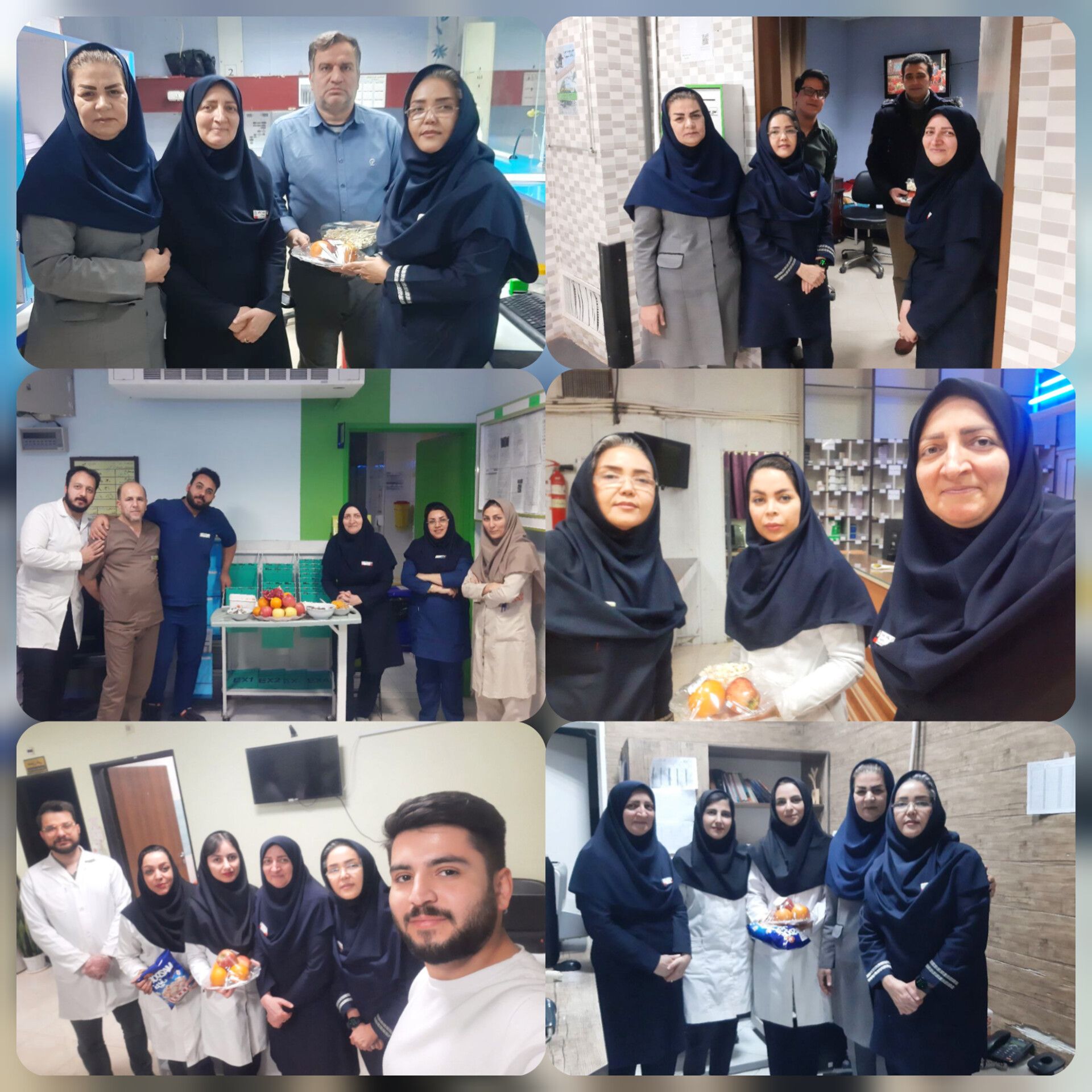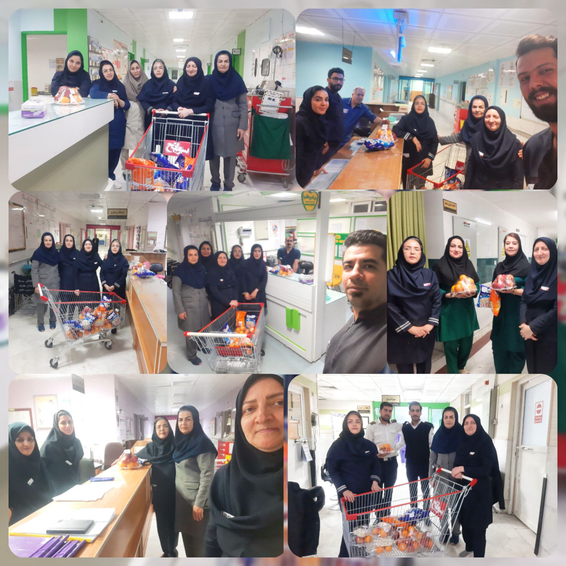 مسئولین بیمارستان جهت عرض تبریک و قدردانی از پرسنل با پک های پذیرایی در تمامی بخش ها و واحدها حضور بهم رساندند.