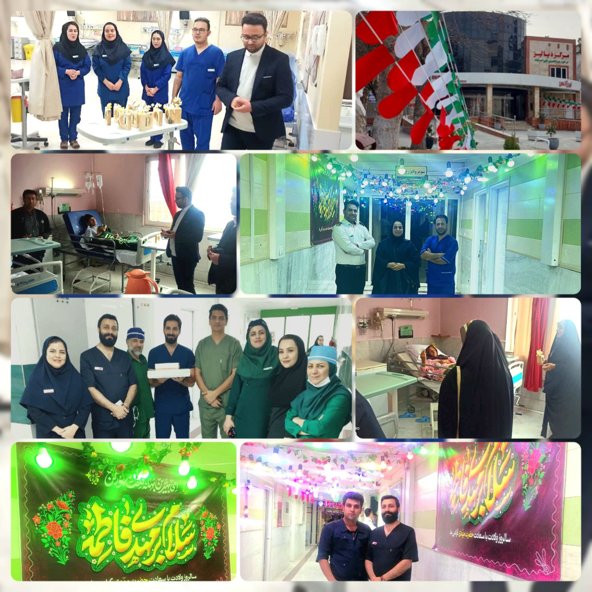 تیم مدیریتی بيمارستان از بیماران مرکز عیادت بعمل آورده و بر بالین بیماران دعای فرج تلاوت شد و با اهدای گل و شیرینی به پرسنل و بیماران میلاد حضرت مهدی موعود(عج) را تبریک و تهنیت گفتند.