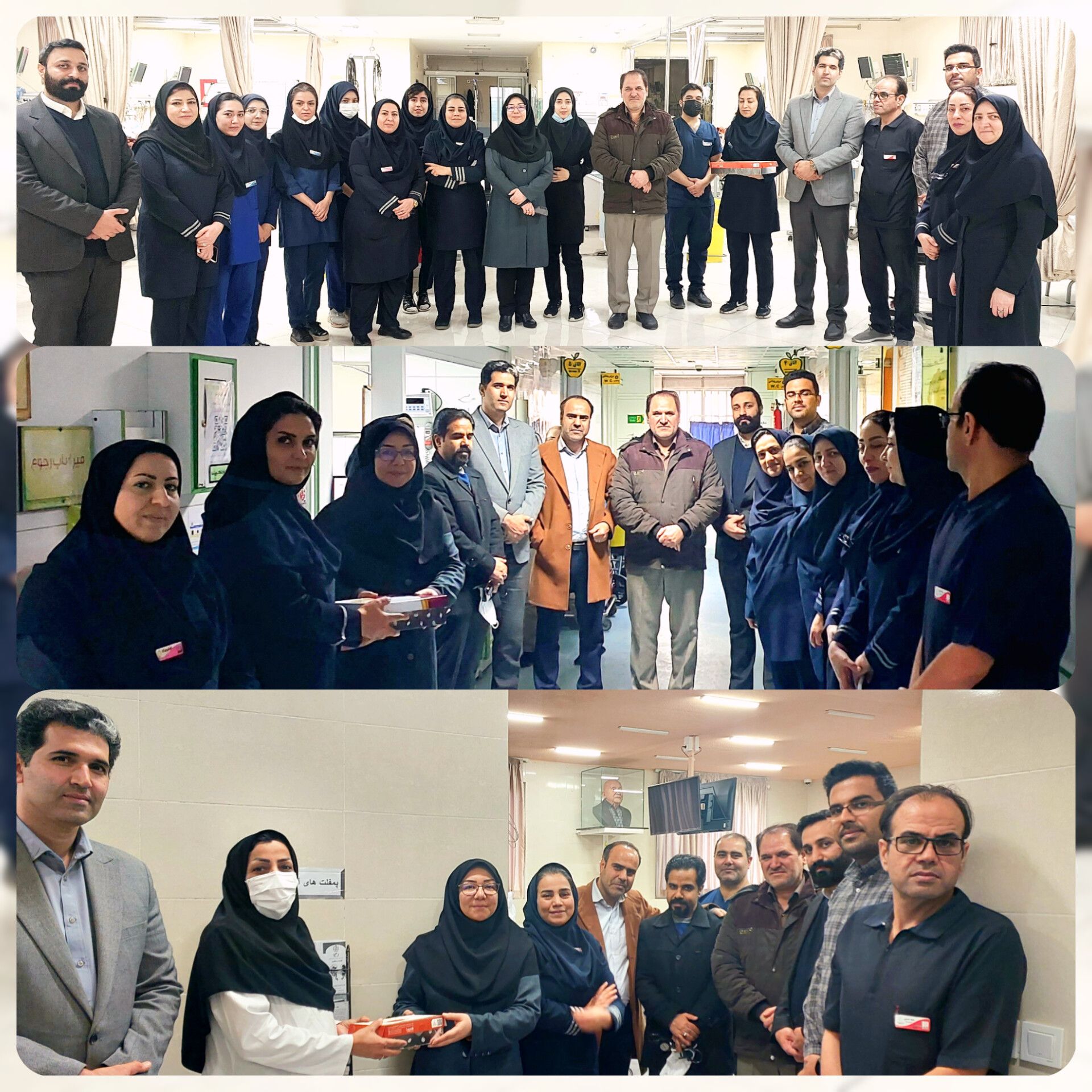 در این مراسم دکتر محمد صادقی مدیریت پرستاری دانشگاه علوم پزشکی مشهد همراه با هئیت رئیسه بیمارستان در بخش ها و واحدهای بیمارستان شرف حضور داشته و با اهدای شیرینی ضمن تبریک این روز خجسته به پرسنل بیمارستان برای همگی آرزوی موفقیت و سربلندی نمودند.