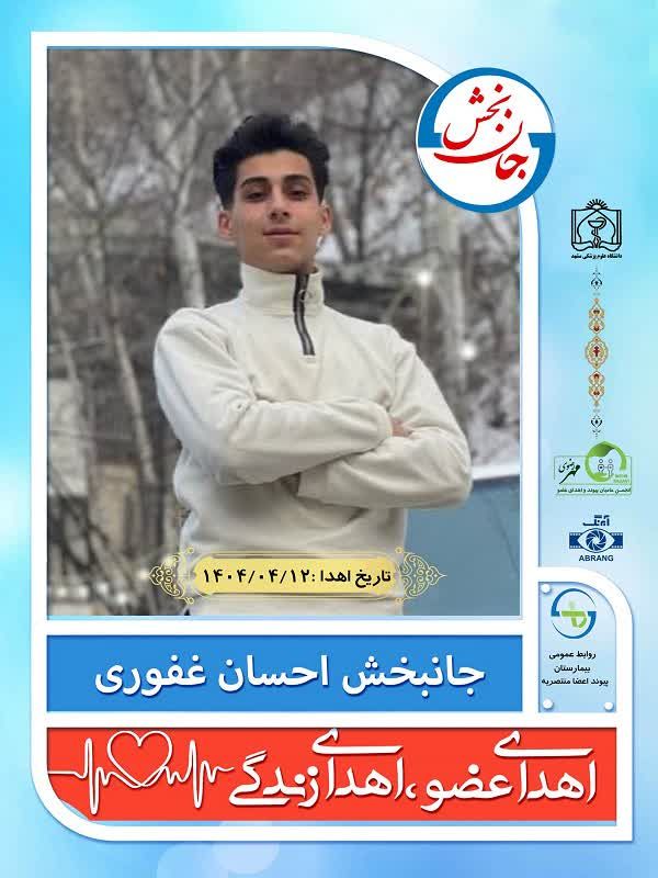 دکتر ابراهیم خالقی خاطر نشان کرد : کبد زنده یاد احسان غفوری در بیمارستان پیوند اعضا منتصریه به آقای ۵٧ ساله از چناران که از نارسایی کبدی رنج میبرد پیوند شد.