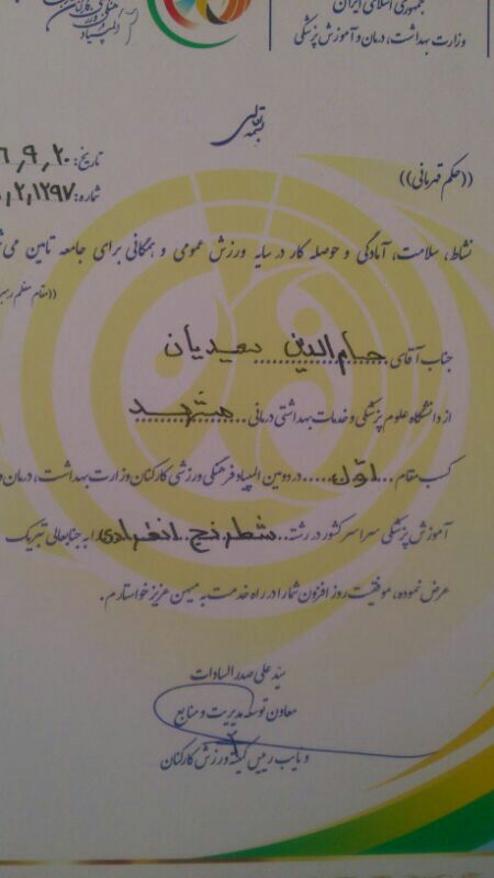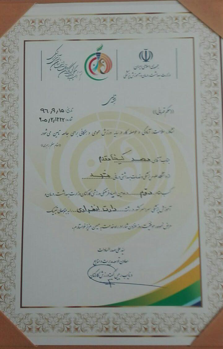 کسب مدال نقره در رشته دارت المپیاد ورزشی کارکنان وزارت بهداشت توسط آقای محمد کیخا مقدم | ||||