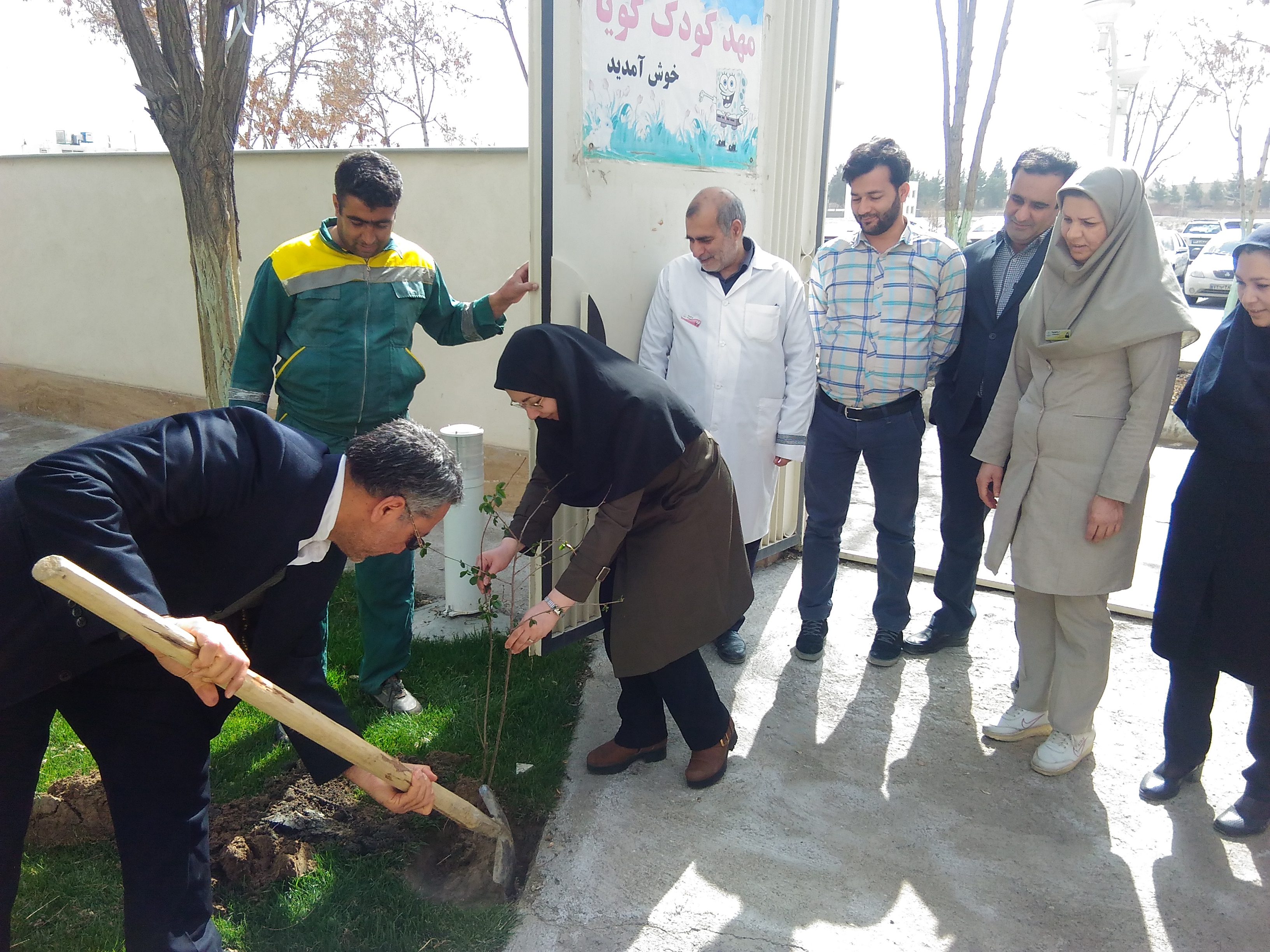 مراسم روز درختکاری و کاشت چندین نهال در بیمارستان آیت الله طالقانی در روز سه شنبه 15 اسفند ماه 1396 با حضور مدیریت بیمارستان دکتر علی دهقانی و مشارکت پرسنل در باغ مهد کودک بیمارستان برگزار گردید. |