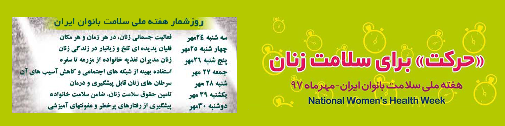 هفته ملی "سلامت بانوان ایران"، همه ساله در هفته پایانی مهرماه با هدف اطلاع رسانی و حساس سازی گروههای مختلف جامعه در خصوص اولویتهای سلامت زنان به عنوان نیمی از جمعیت کشور، برگزار می شود. | |||||
