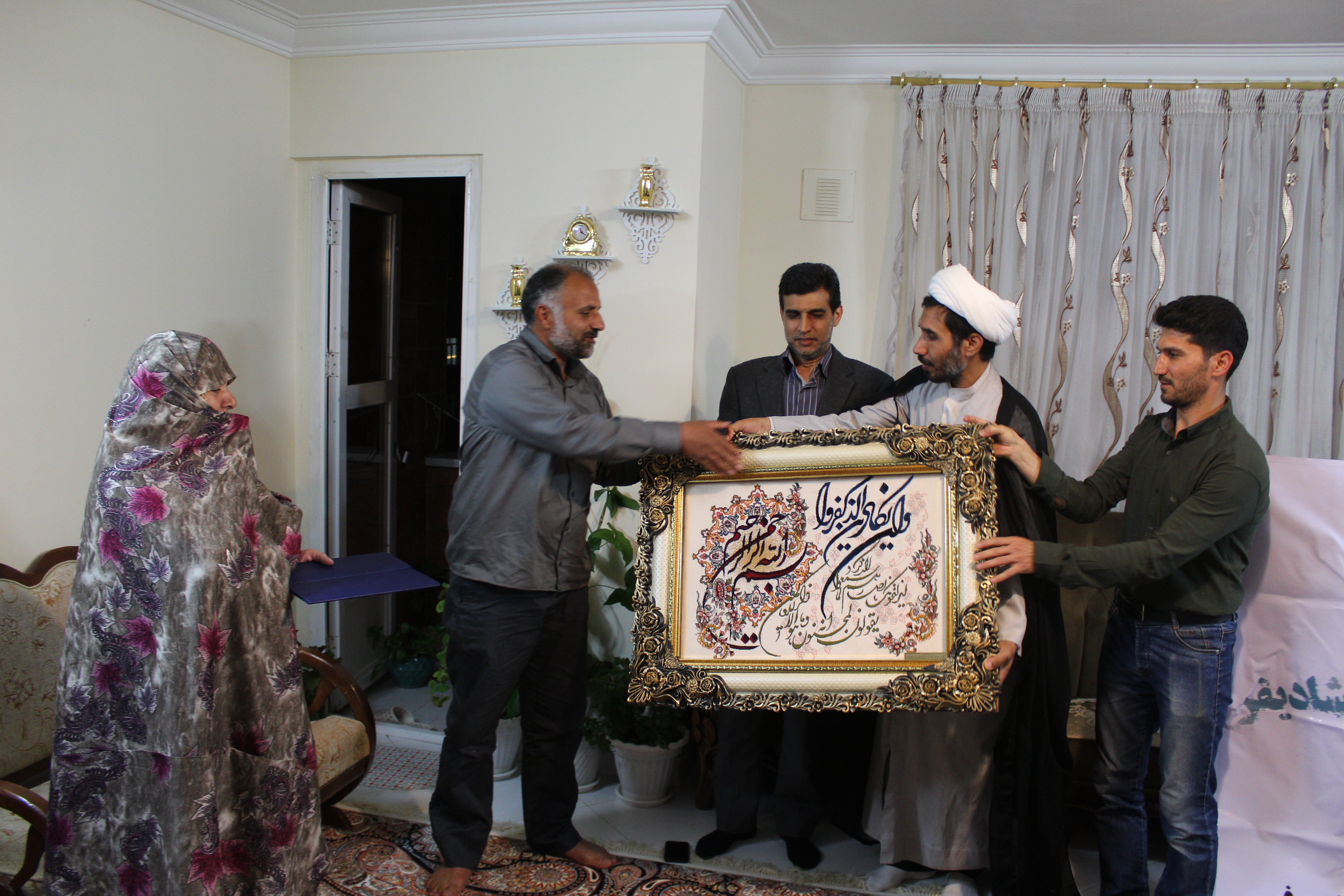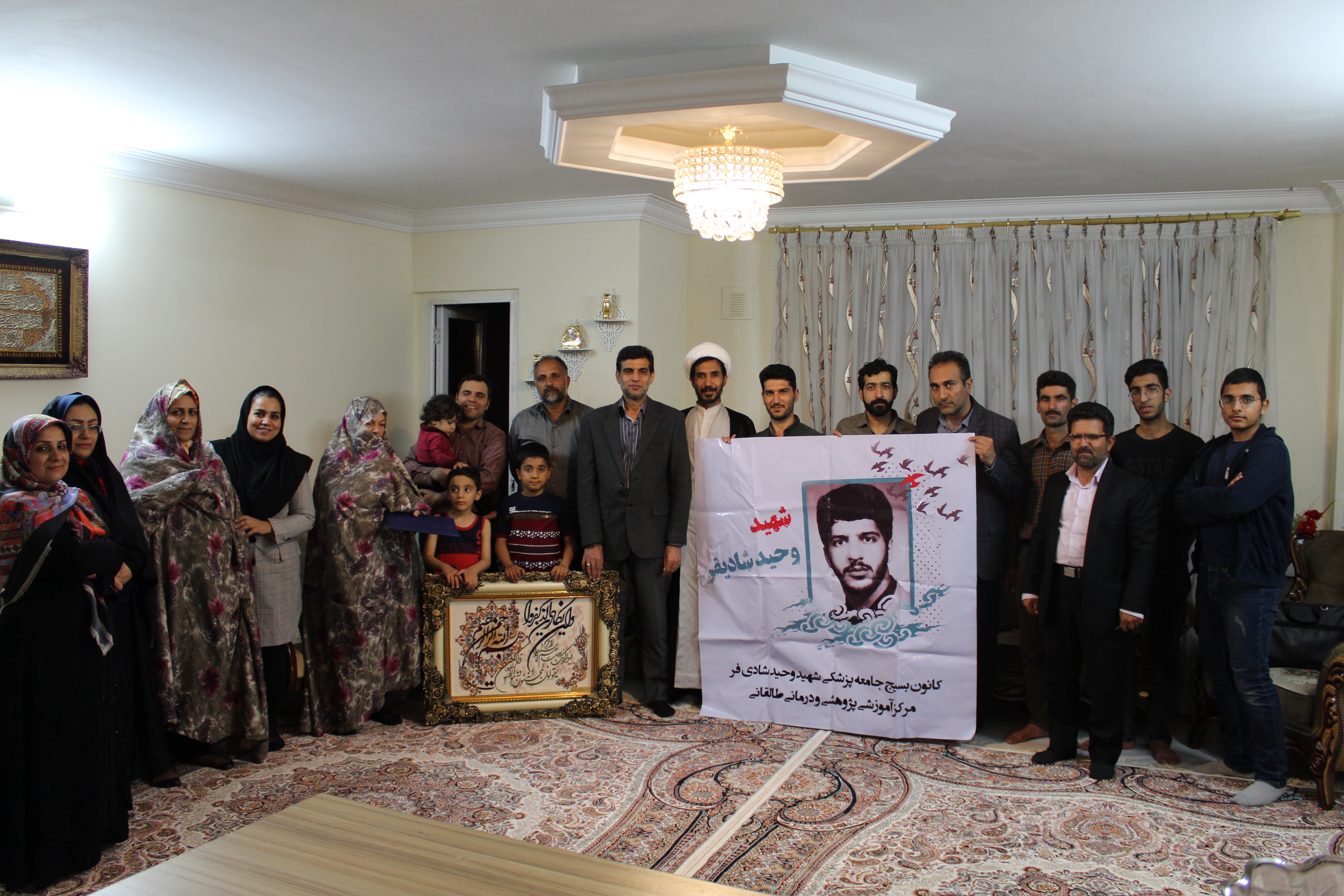 دکتر محمد وجدانی رئیس بیمارستان طالقانی و فرمانده کانون بسیج جامعه پزشکی شهید شادی فر به همراه شورای کانون بسیج این مرکز با همسر و خانواده شهید علی مشمول دیدار نمودند. دکتر محمد وجدانی بیان داشتند : ما همیشه خود را مدیون خون شهدا می دانیم و ارتباط با خانواده معظم شهدا را از افتخارات خود در دنیا و آخرت می دانیم . این دیدار اولین محفل از سلسه محافل دیدار با خانواده شهدای همکاران بیمارستان طالقانی بود . به شکرانه ماه مبارک رمضان به دیدار خانواده همکار عزیزمان آقای محمود مشمول فرزند شهید علی مشمول رفتیم و از نزدیک با همسر و فرزندان شهید دیدار نموده و با منش شهید آشنا شدیم. در پایان مراسم لوح سپاس و هدیه ای به رسم یادبود از سوی کانون بسیج جامعه پزشکی شهید شادی فر به همسر و فرزندان شهید اهدا گردید. |