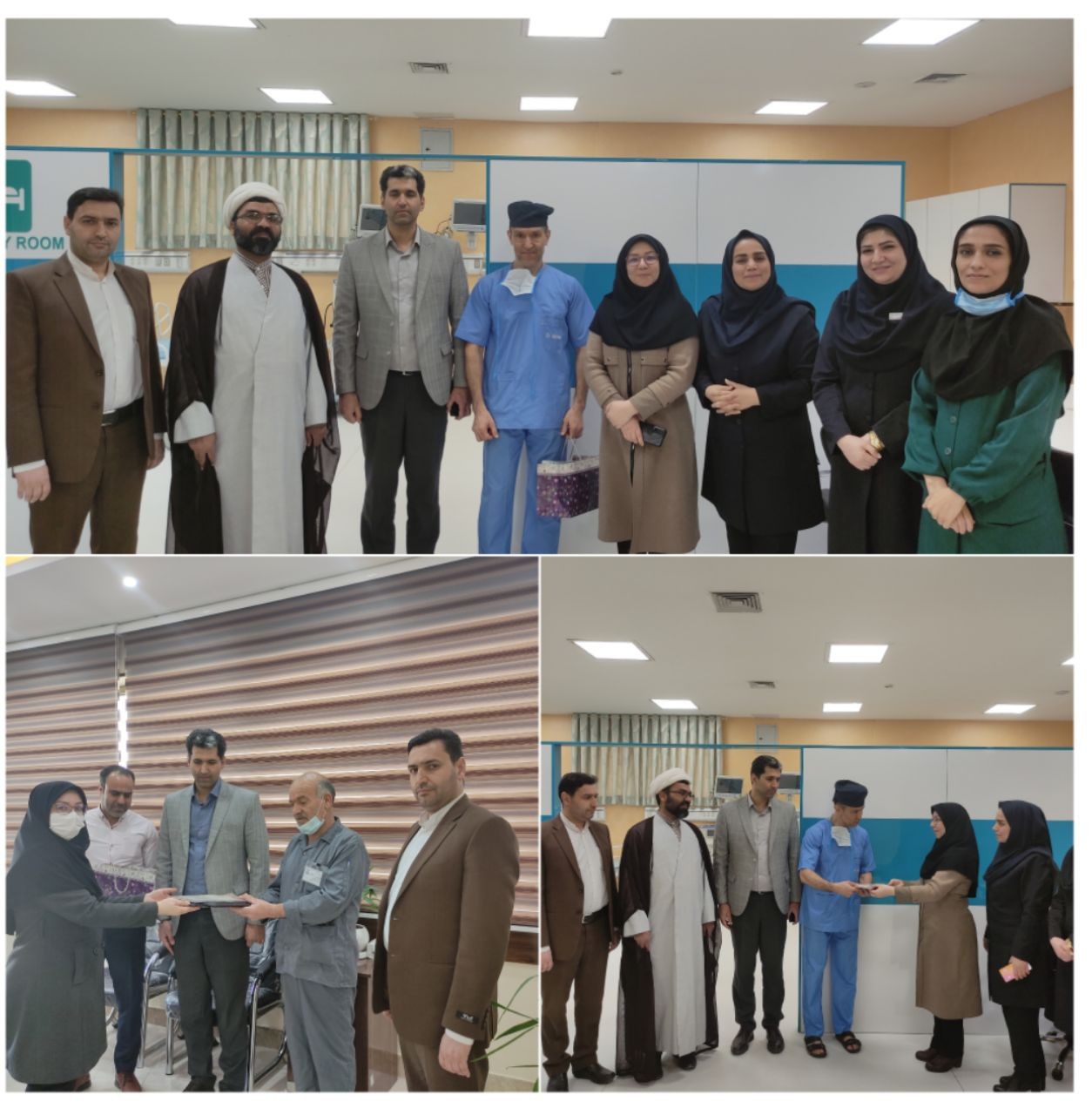 در این مراسم که به مناسبت میلاد با سعادت حضرت ابوالفضل عباس(ع) و روز جانباز برگزار شد، ریاست بیمارستان سرکار خانم دکتر صباغ سجادیه و مدیریت محترم بیمارستان جناب آقای دکتر آشفته با اهدای تقدیر نامه وتابلو ضمن تجلیل از ارزشهای جانبازان از زحمات ایشان در این مرکز تشکر و قدردانی کردند.