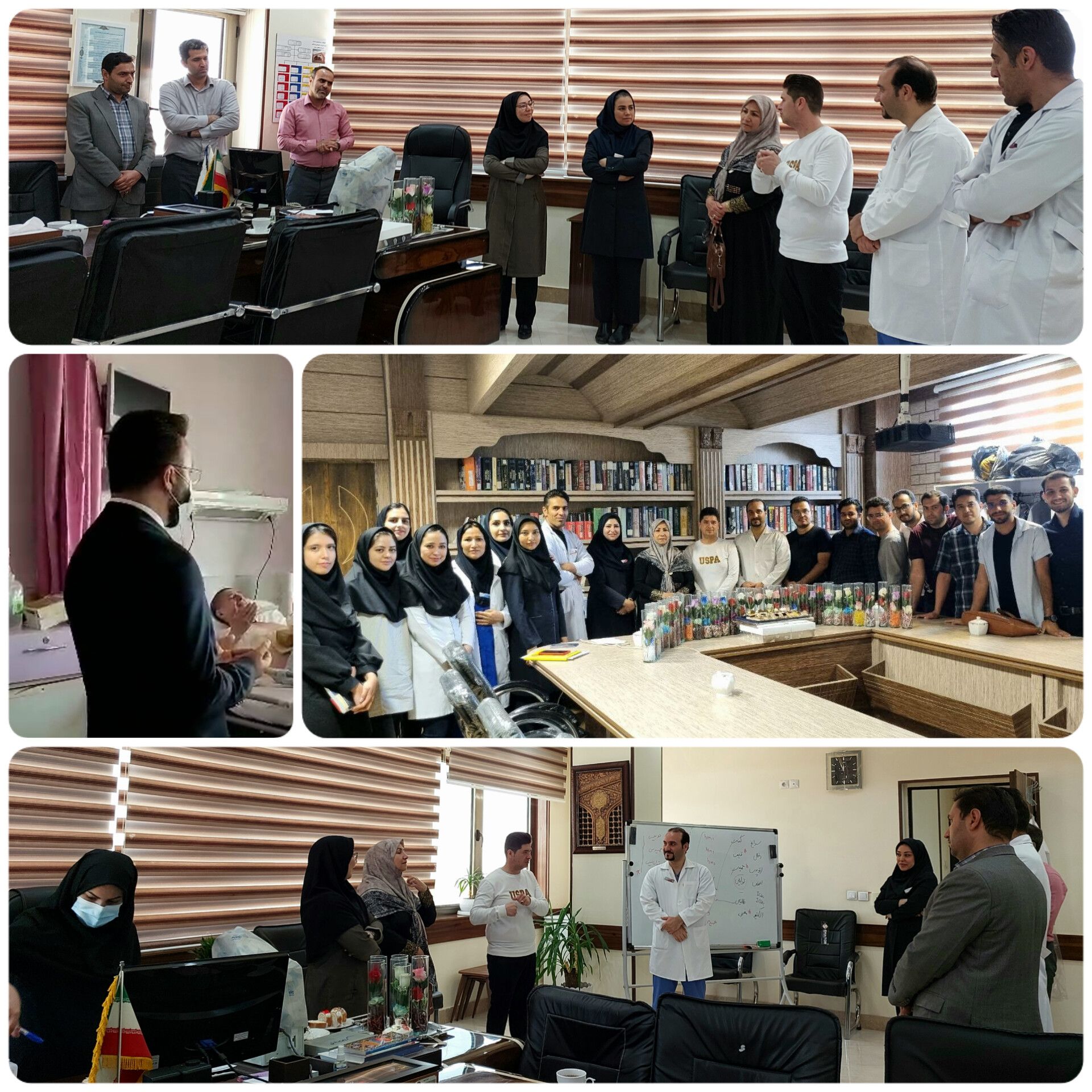 ریاست سرکار خانم دکتر صباغ و مدیریت جناب آقای دکتر آشفته و مترون بیمارستان سرکارخانم دشتی به بیمارستان مراجعه کرد و با اهدای گل و شیرینی از همکاران بیمارستان تقدیر کرد.